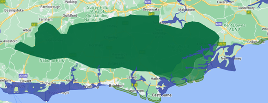 Location of the Andredswald in southeast England (source: Wikipedia)