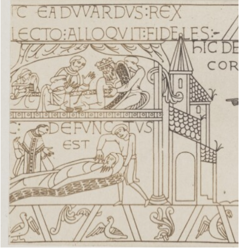 King Edward on his deathbed, in the Bayeux Tapestry (source: Wikipedia)