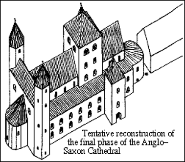 A reconstruction of the Anglo-Saxon Canterbury Cathedral (source: Wikipedia)